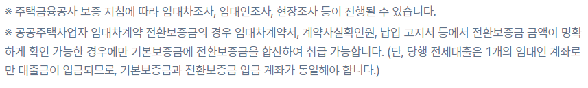 - 주택금융공사 보증 지침에 따라 임대차 조사,임대인 조사, 현장 조사가 필요한 경우