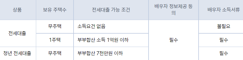 - 1주택 보유 고객은 부부합산 연소득이 1억원 이하여야 하며, 보유 주택의 시세가 9억원이하여야 합니다.
