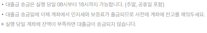 - 대출한도는 잔금을 초과할 수 없습니다.