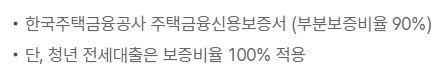 청년전세대출: 전세 및 월세 보증금의 90% 범위 내에서 최대 1억원 이내 가능