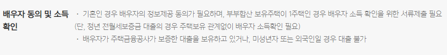 - 1주택 보유자의 경우 부부합산 연소득 1억원 초과 및 시세9억우너 초과 주택을 보유한 경우 대출 실행 불가