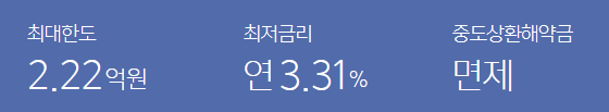 최대 한도는 2억2천2백만원까지 가능하며, 최저 금리는 연 3.31%의 상품입니다.