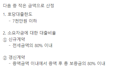 • 임차 전용면적 85m2이하 주택 및 채권양도협약기관 소유의 기숙사(호수가 구분되어 있고 전입신고가 가능한 경우)
