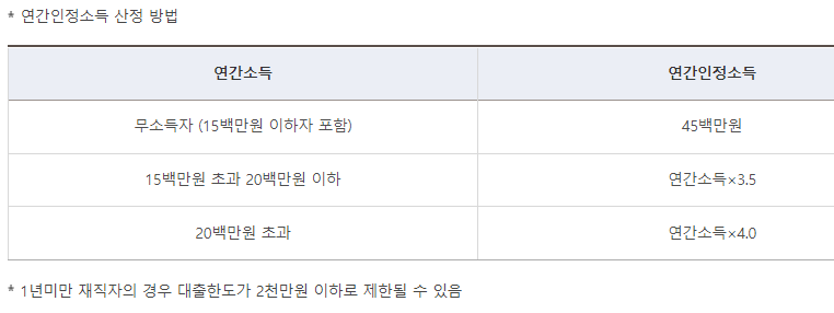 소득은 대출신청인 및 배우자의 합산 총소득이 5천만원 이하여야 합니다.