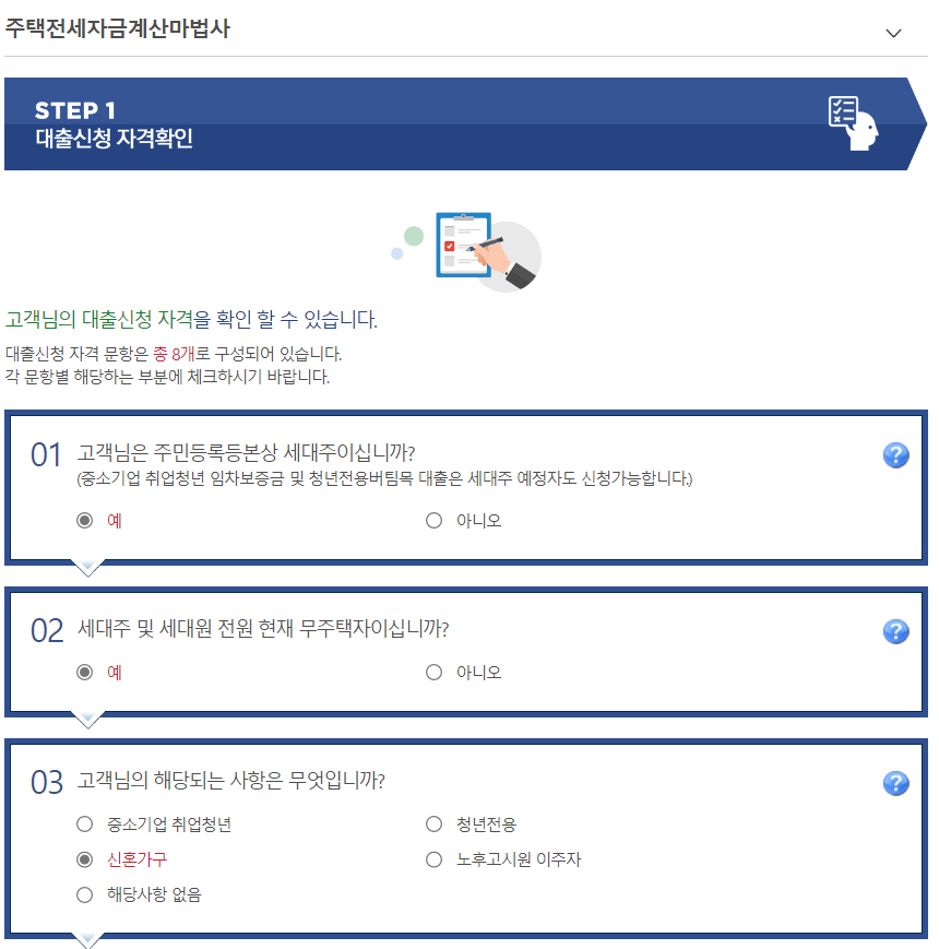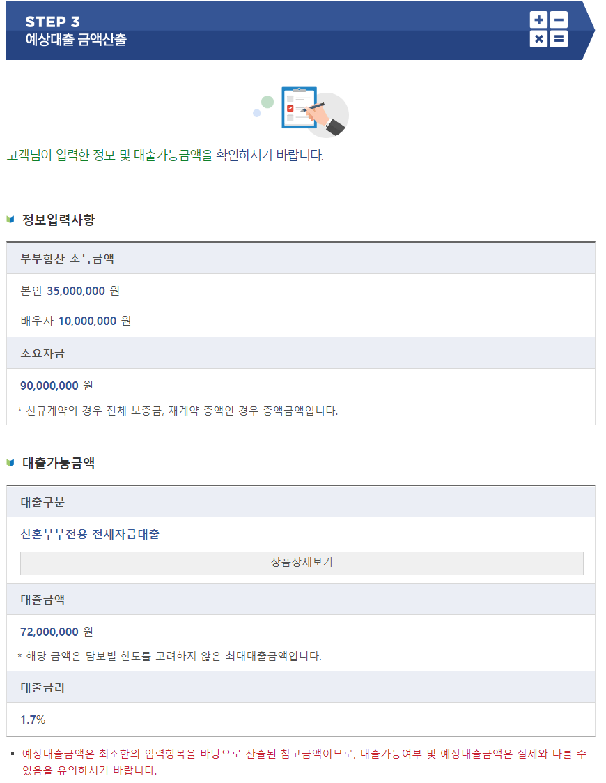 대출한도 산정은 전세금액의 70%까지만 대출이 가능하고 신혼이거나 자녀가 둘 이상일 경우엔 80%까지 가능합니다.