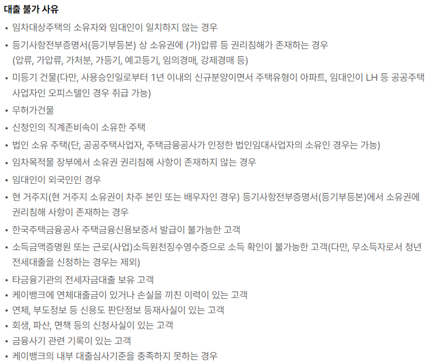 케이뱅크 전세자금대출 기타사항 및 신청방법