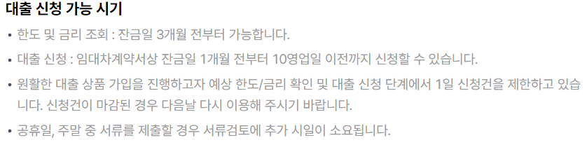 대출 신청 가능 시기는 아래와 같습니다.