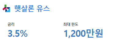 이 상품의 금리는 3.5% 고정금리이며 , 요즘 신용대출 금리가 5%대를 육박하는 걸 생각하면 상대적으로 저금리에 속합니다.