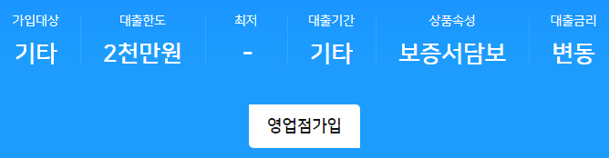 대출한도는 최저 5백만원부터 최대 2천만원까지 가능합니다.