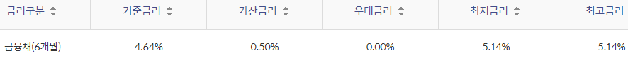 대출금리는 기준금리 + 가산금리를 적용하며 아래와 같습니다.