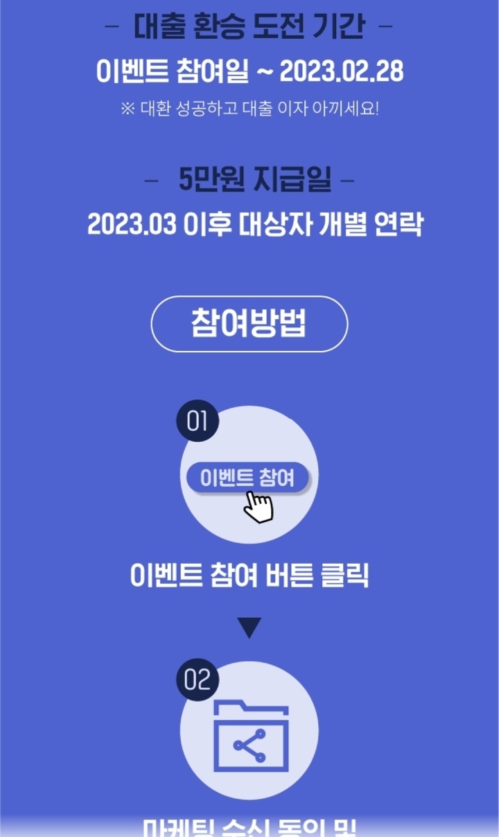 단 꼭 이벤트 응모를 하시고 진행하시길 추천드려요 대환대출 실패 시 5만원 주는 이벤트도 하고 있으니까요.