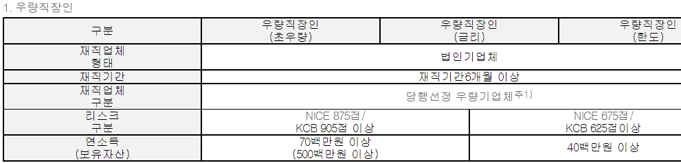 대출 조건은 현 직장 6개월 이상 재직중인 급여 소득자로 정확한 사항은 아래와 같습니다.