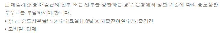중도상환수수료는 아래와 같습니다.