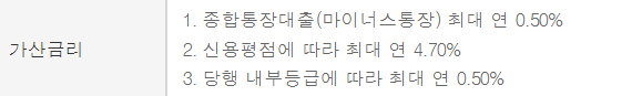 최종 금리는 모든 우대금리 및 가산금리 합한 금액이 4.5%이하여도 최저 금리기준인 4.5%를 적용합니다.