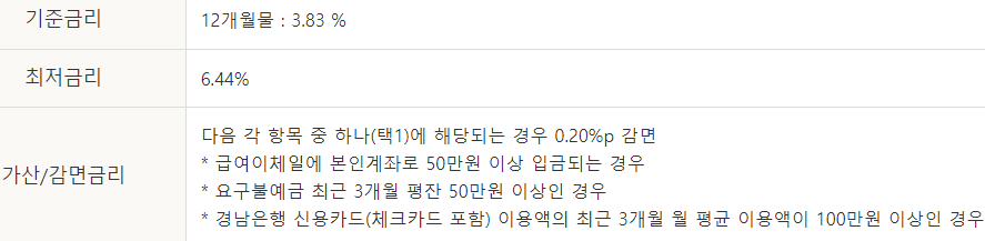 경남은행 직장인 신용대출 한도 및 금리