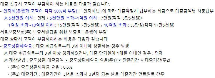 대출 부대비용 및 기타사항