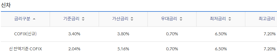 대출금리는 신차 대출이냐, 중고차 대출이냐에 따라 아래와 같이 금리가 달라집니다.