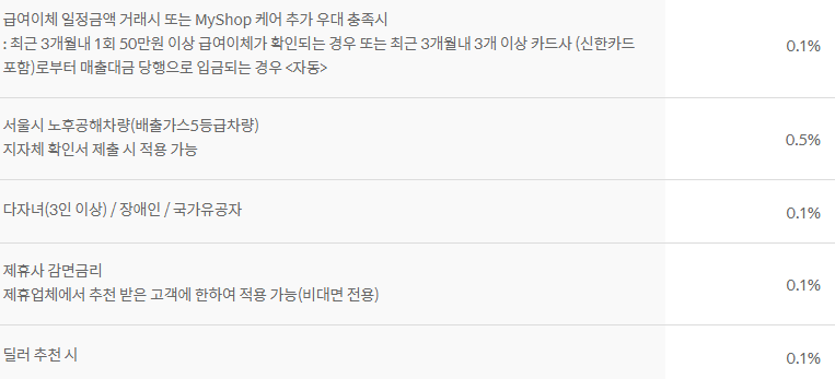 신한은행 마이카 신차, 중고차 대출 기타사항 및 신청방법