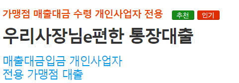 이 상품은 매출대금입금 개인사업자 전용 가맹점 대출로 가맹점 매출대금을 우리은행으로 이용하는 개인사업자 전용 통장대출입니다.