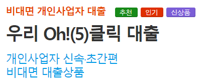 우리은행의 개인사업자대출 조건을 맞추기 어려운 분들이라면 아래 개인사업자대출 TOP5를 보시면 쉽게 가능한 시중은행 대출 상품들이 있으니 참고하시길 바랍니다.