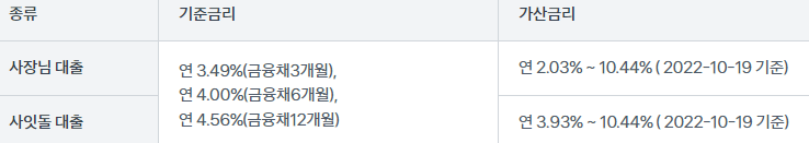 금리는 기준금리 + 가산금리를 통해 산정합니다.