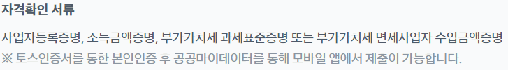 - 정상 영업 중인 사업자등록번호 보유 개인사업자(휴,폐업 중이거나 법인사업자는 제외)