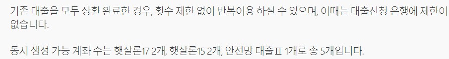 만일 햇살론 17을 이용중이신 분들이라면 기존 대출 잔액을 햇살론 15로 대환하는 대출을 신청 가능합니다.