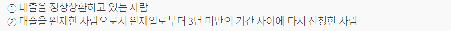 - 제외자는 개인회생 및 개인파산을 신청했거나 법원에서 인가한 경우 불가