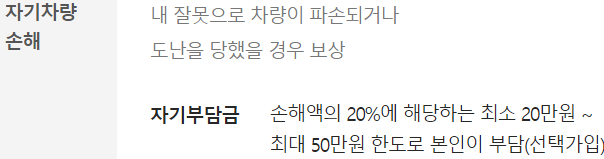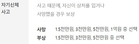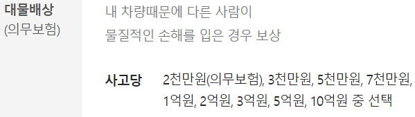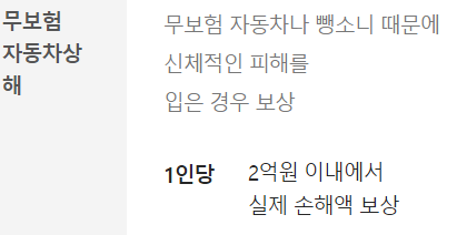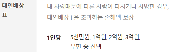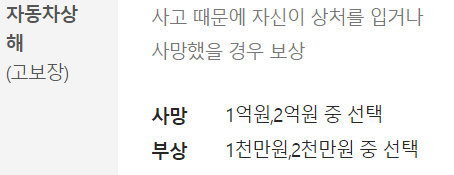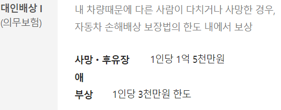 보장은 아래와 다른사람의 피해를 보상하는 보장과 내가 입은 피해를 보상하는 보장으로 나누어져 있습니다.