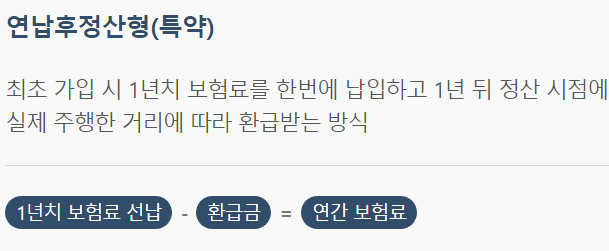연납후 정산형은 보험기간 1년이며 연납후에 환급금을 통해 정산됩니다.