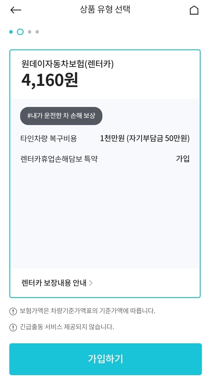 하나손해보험 원데이 자동차보험 가입 절차