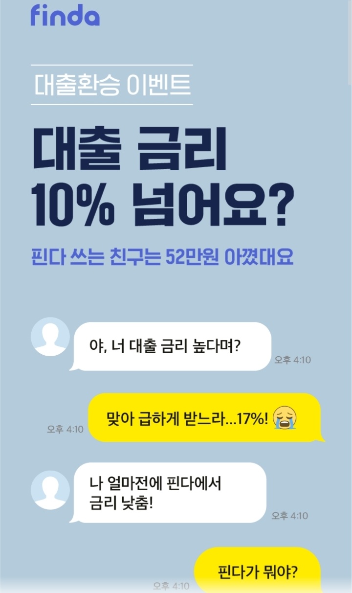 대출이자가 쎄다 보니 그에 따른 은행들은 대출이자 수입을 얻기 때문에 서로 대환대출 해주려고 혈안인데 핀다는 그런 점을 잘 파고 든 것 같습니다.