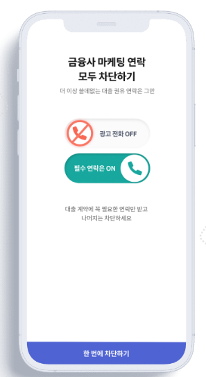 금융사 마케팅 연락 모두 차단하기 버튼으로 모두 차단할 수 있습니다.