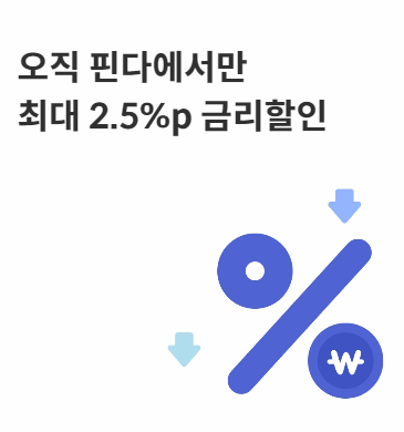 대출을 실행할 때 핀다를 통해 신청하면 금리 할인을 해주는 금융사들도 있으며, 더 낮은 금리로 대출 갈아 타는 대환대출 이벤트도 진행중입니다.