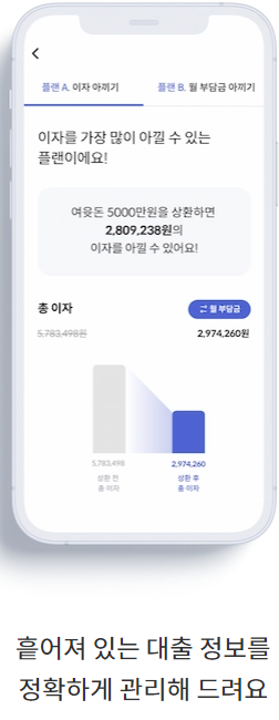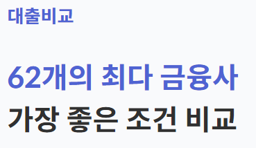단 1분! 1금융권 포함 60여개 금융사의 200여개 대출을 쉽게 비교하고 신청해 보세요. 갖고 있는 대출도 편하게 관리 할 수 있어요.