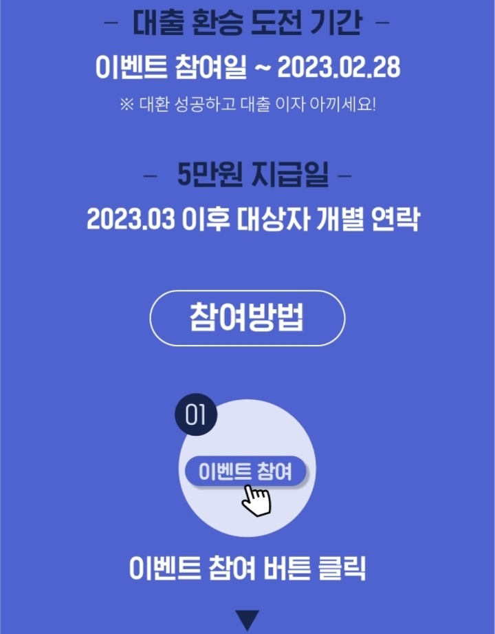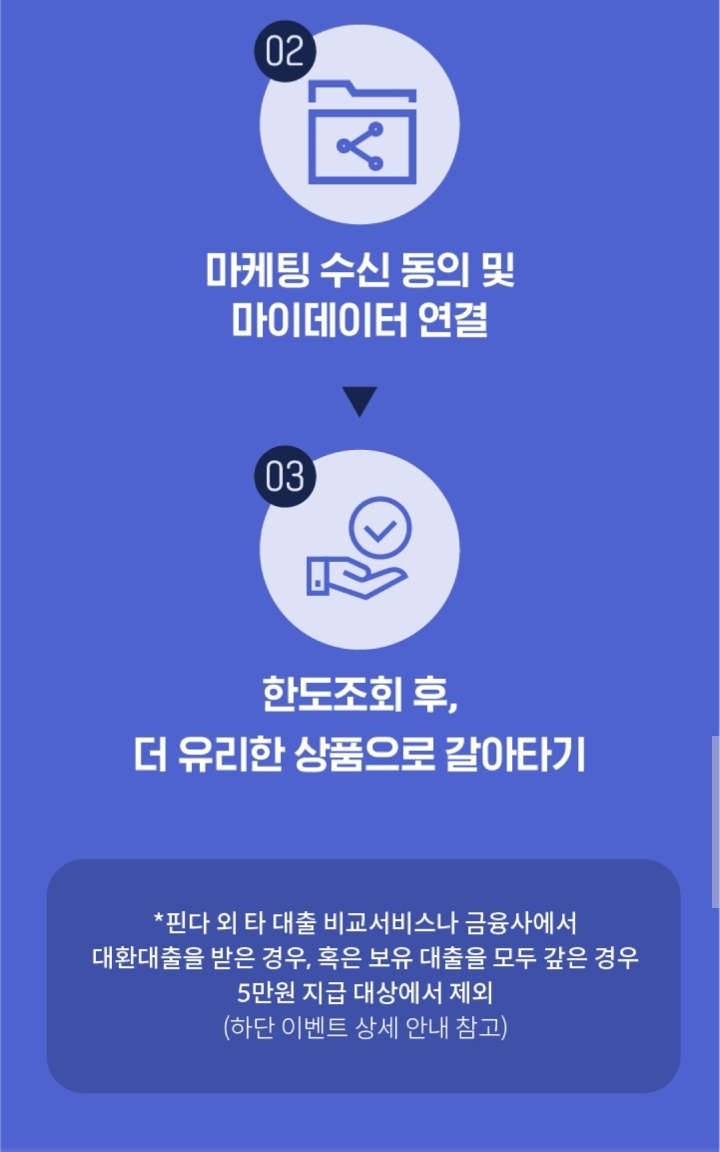 고금리 10% 이상인 대출에 대한 대환대출 불가 시 5만원을 주는 이벤트를 진행중입니다.