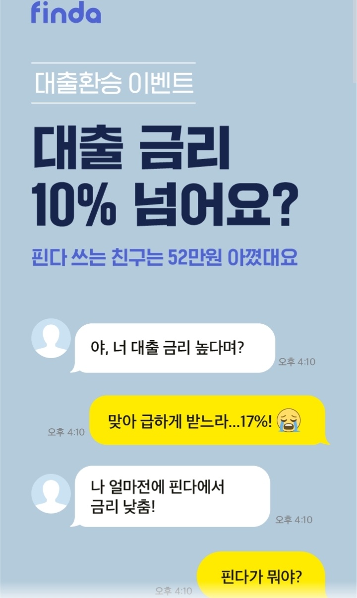 현재 핀다에서는 대환대출 이벤트를 하고 있습니다.