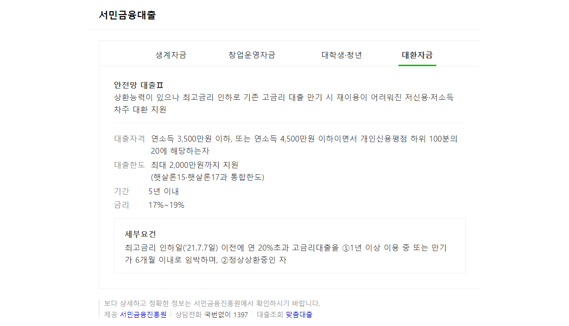 신한은행에서는 법정금리 인하에 따라 연 20%이상 고금리 상품을 이용하고 계시는 분들에게 제도권 금융으로 대환이 가능하게 하는 정부 지원 상품이라고 생각하시면 됩니다.