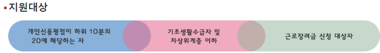 - 개인신용평점이 하위 20%이하인 자(NICE기준 744점, KCB기준 700점 미만)