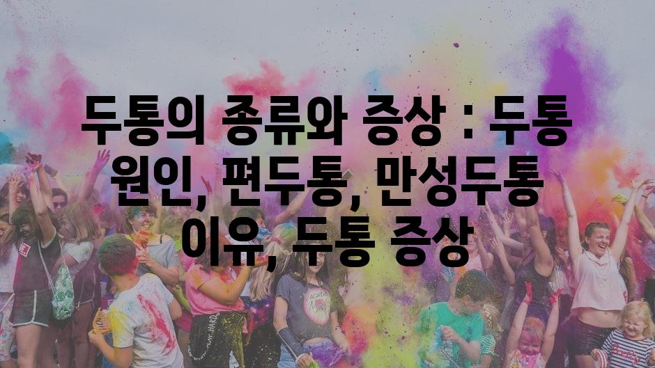 두통이라는 복잡한 상태는 다양한 원인과 증상이 특징입니다. 긴장성 두통은 가장 흔한 두통 유형인 반면, 편두통은 더 심하고 쇠약하게 할 수 있는 강렬한 두통입니다. 만성 두통은 평생 동안 15일 이상 지속되는 두통으로, 심각한 기능 장애로 이어질 수 있습니다.