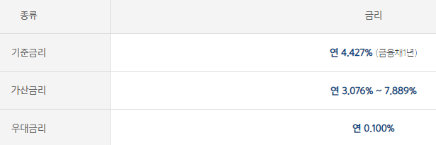 대출금리는 아래와 같습니다.