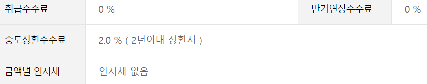대출 취급수수료 및 만기수수료 등 여러 수수료는 없지만 중도상환수수료는 있습니다.