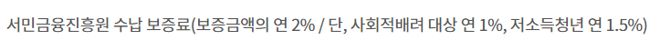 단 서민금융진흥원이 보증을 서주는 대출이라 서민금융진흥원에 보증료를 납부해야 합니다.