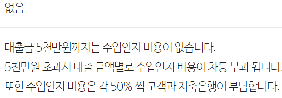인지세란 대출 신규 거래 약정 시 내는 세금으로 5천만원 이하까지는 비과세이며 대출금액 5천만원 초과 시 7만원 , 1억원 초과 시 15만원의 인지세를 은행과 고객이 각각 50%씩 부담합니다.