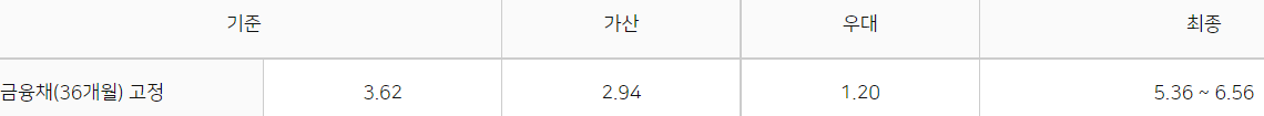 대출 금리는 최저 5.36% ~ 최고 6.56%라고 보시면 됩니다.