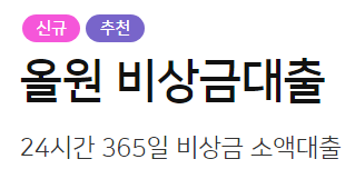 만일 농협은행의 올원 비상금 대출이 마음에 들지 않는 분들이라면 아래 카카오뱅크 비상금대출이나 우리은행 우리비상금대출을 남겨둘테니 참고하시길 바랍니다.