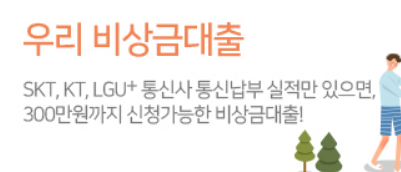 이 상품은 특이하게도 통신 정보를 활용한 신개념의 비상금대출 상품으로 우리은행 비상금대출 외 다른 여러 은행의 모바일 소액대출과 금융정보를 하단에 남겨두었으니 참고 하시길 바랍니다.