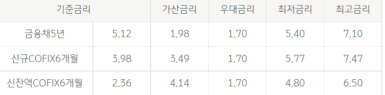 대출금리는 변동금리, 혼합금리에 따라 달라지며 아래와 같습니다.