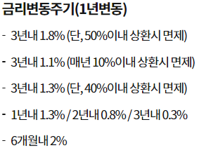 1,3년 거치기간 설정이 가능하며 거치기간이란 원금은 갚지 않고 이자만 내는 기간을 말합니다.
